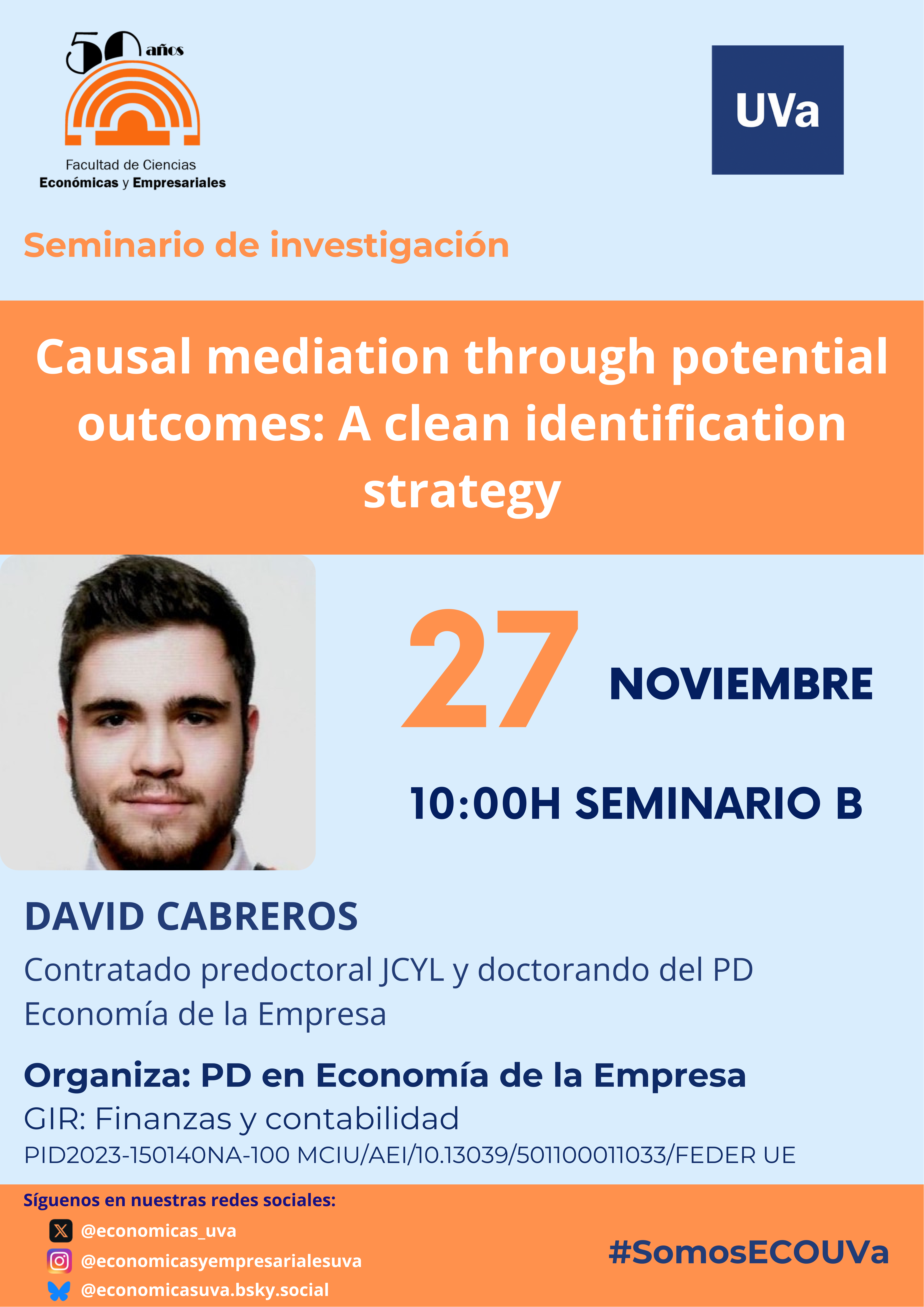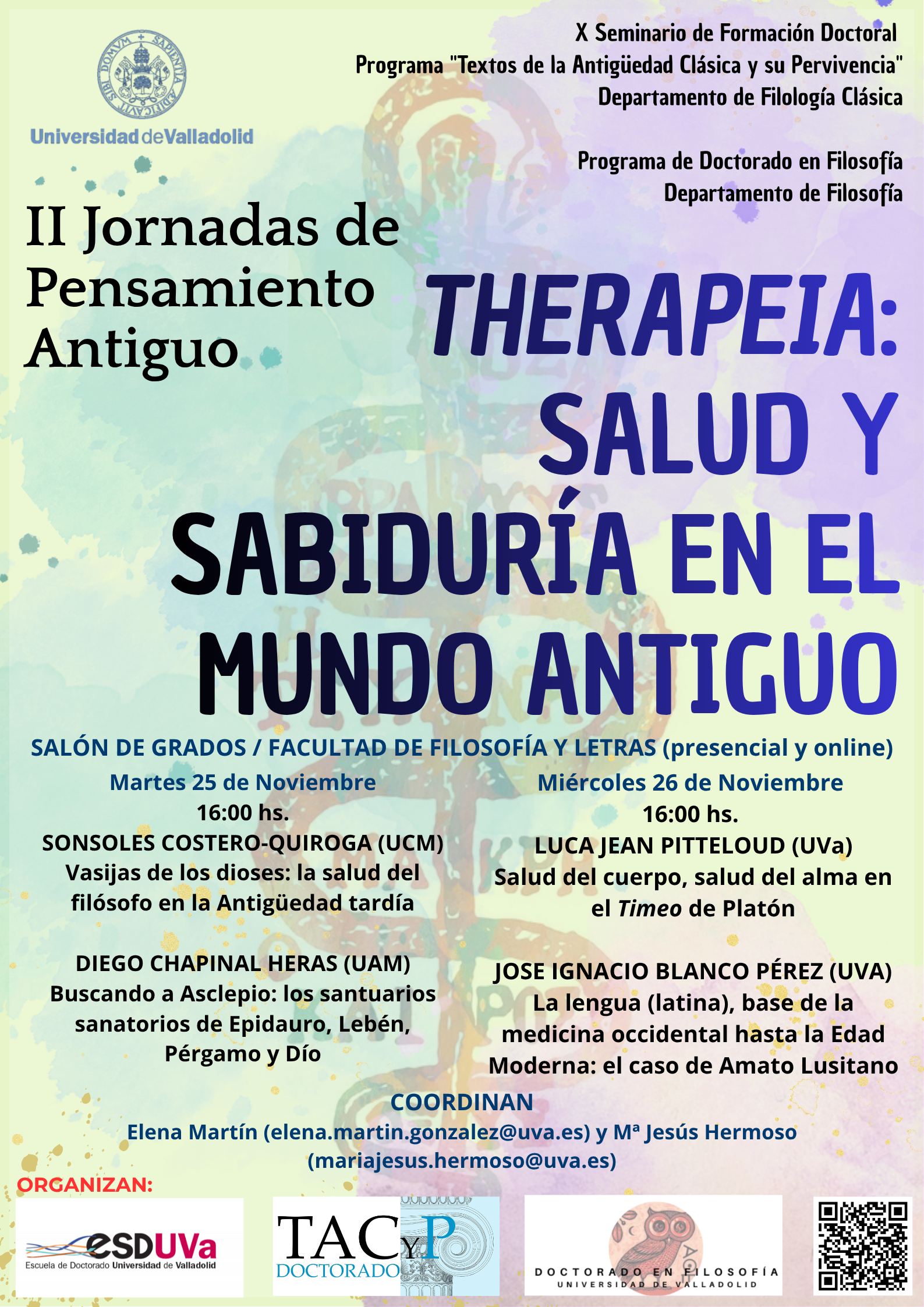 - 9:30 h – Presentación del Plan de Investigación de los doctorandos de nueva matrícula